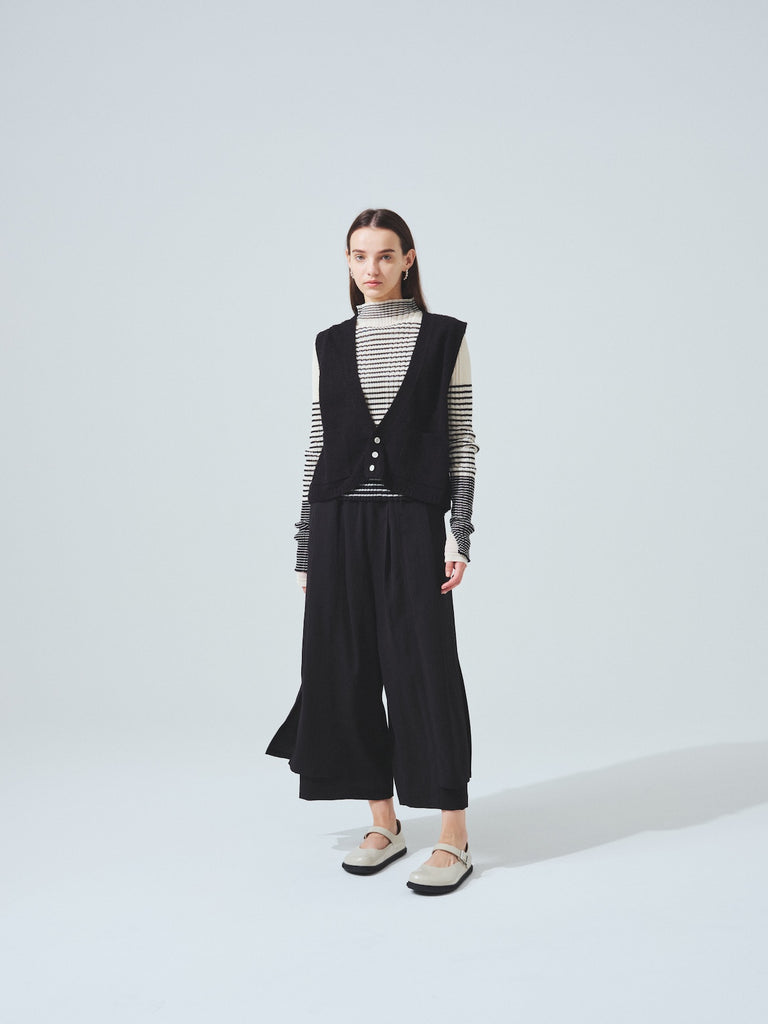 POLYESTER LAYERED HALF-SKIRT PANTS