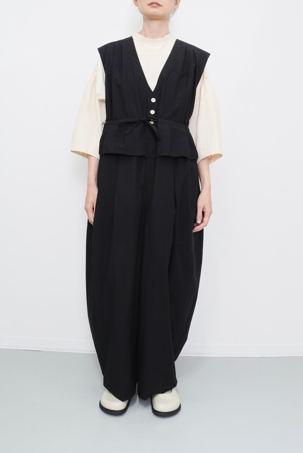 ウエスト内側のドローコードを絞ることでギャザーが生まれ、ウエストラインを細く見せるとともに、スタイリングの変化を楽しめます。