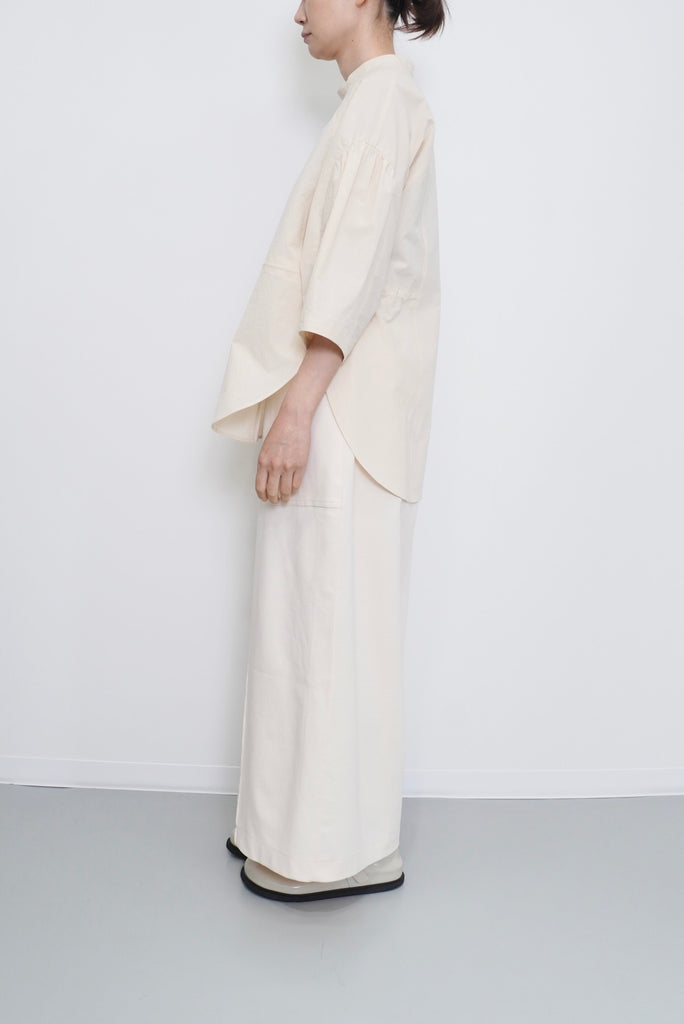 アームホールと身頃にはゆとりをもたせたAラインシルエットで、リラックスした着心地を実現しています。