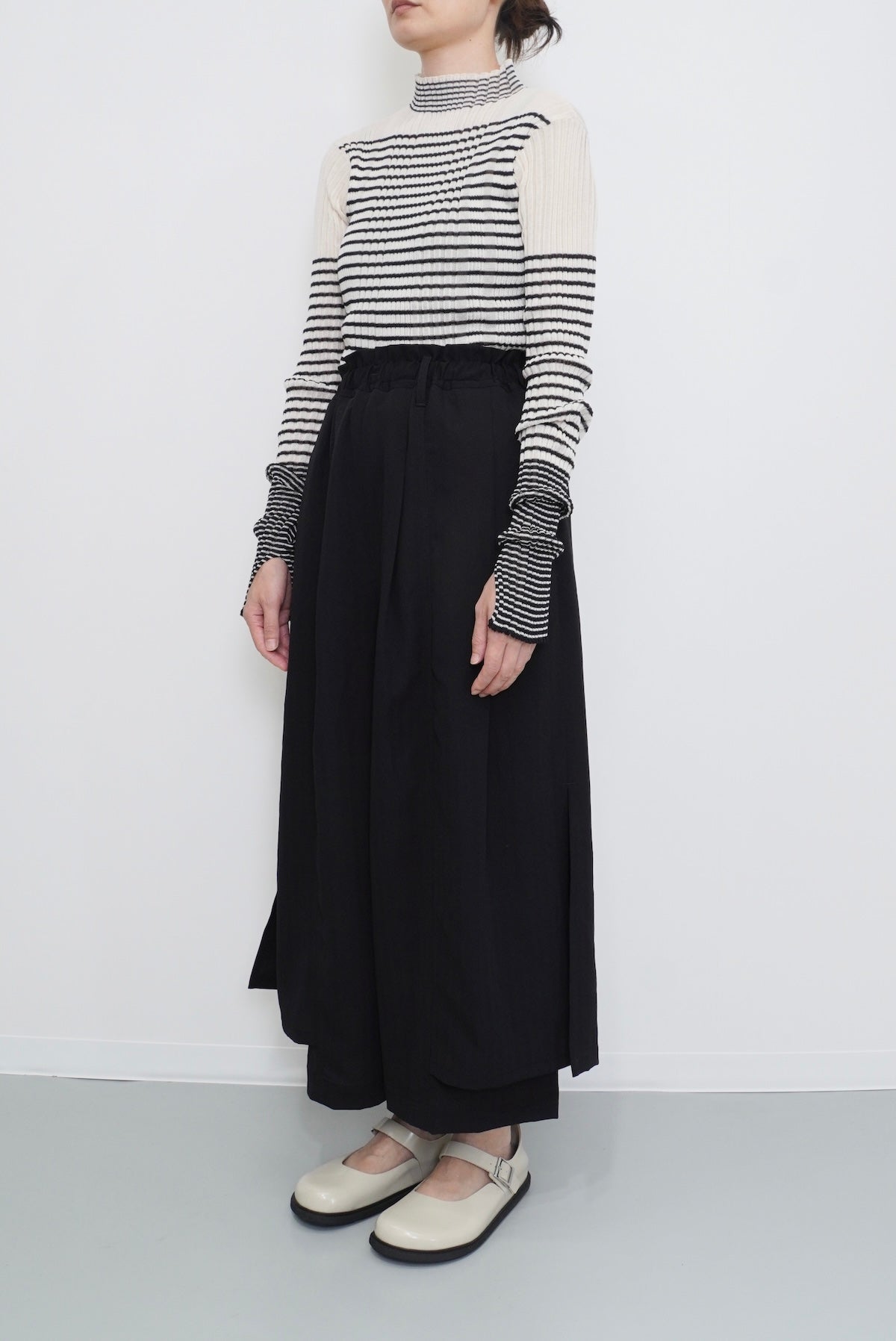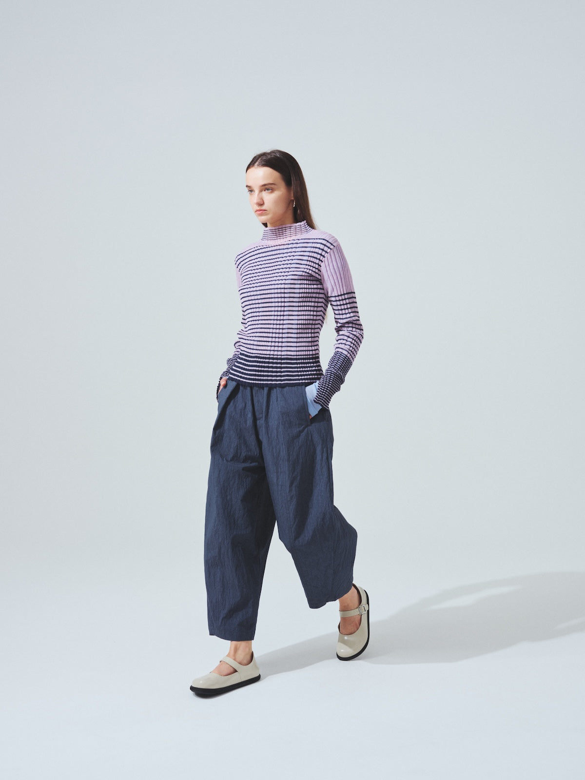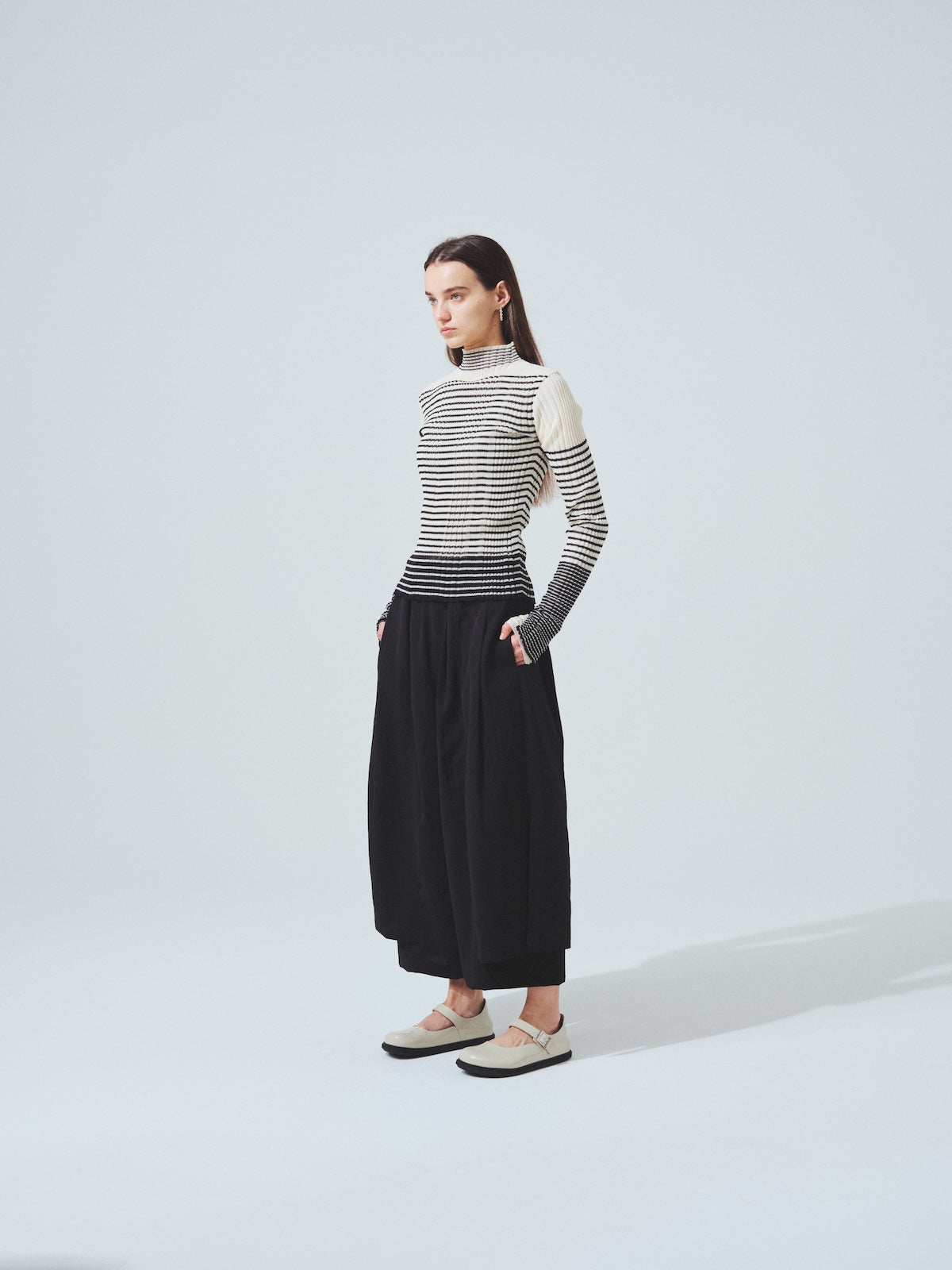 服と身体の間に生まれる空間を意識したシルエットは、ブランドのデザインフィロソフィーを反映しており、体のラインをさりげなくカバーします。