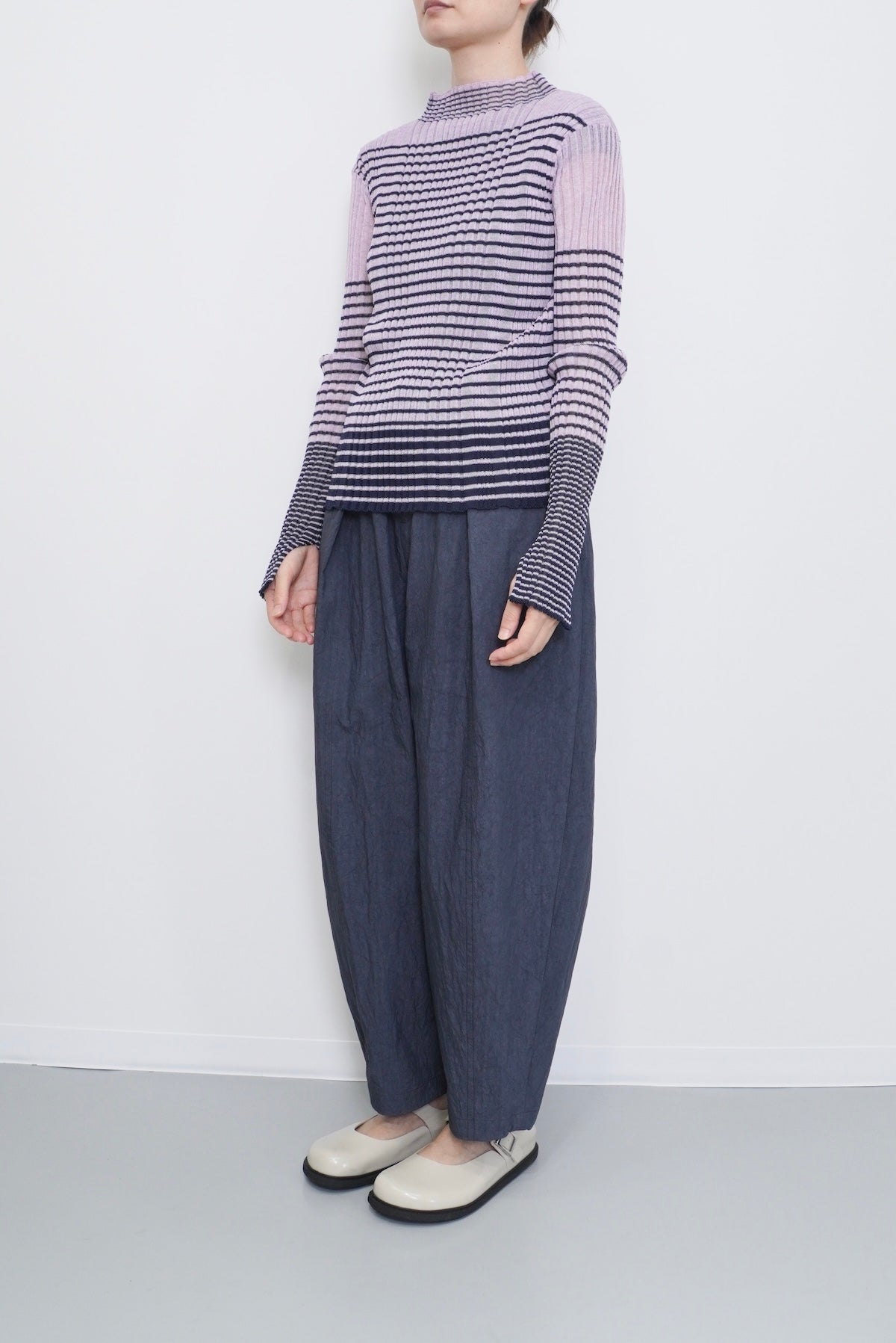 ボーダーの柄テキスタイルは少しシアー感のある涼しげな印象です。