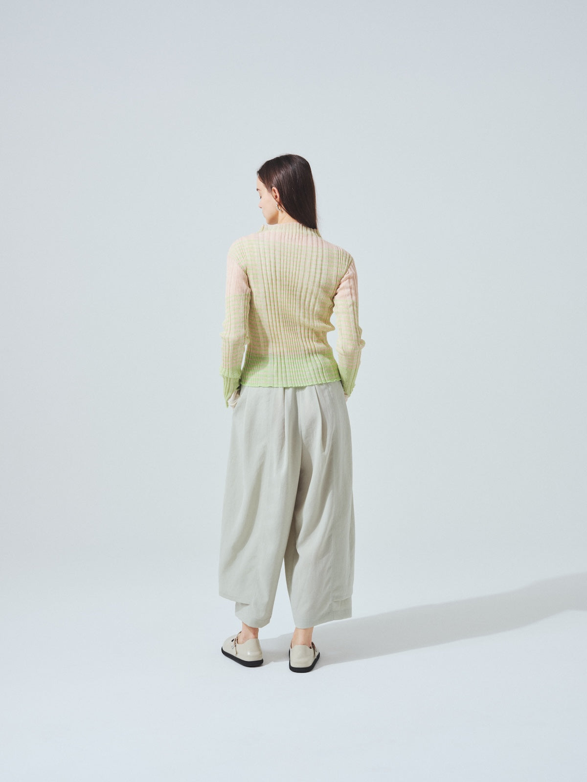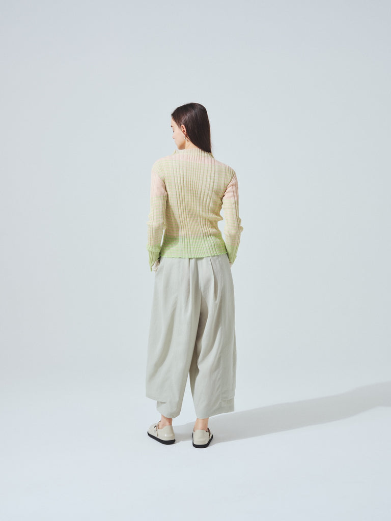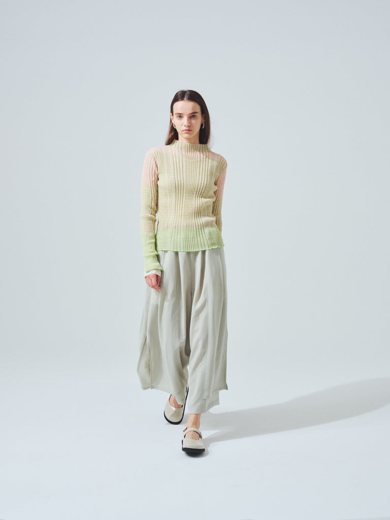 OTOÄAのデザインは、パンツスタイルからスタートしています。服と身体の間に生まれる空間を意識したシルエットは、ブランドのデザイン哲学を反映しています。股上が深く、ヒップ部分にゆとりを持たせたデザインで、体のラインをさりげなくカバーします。