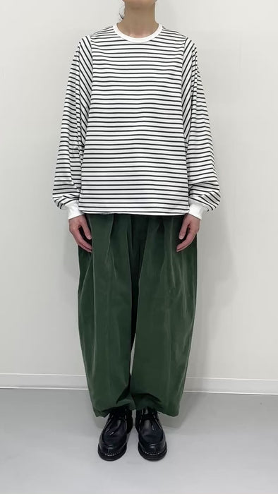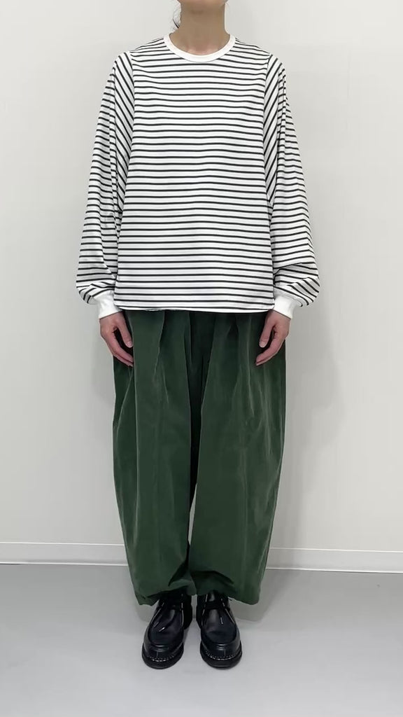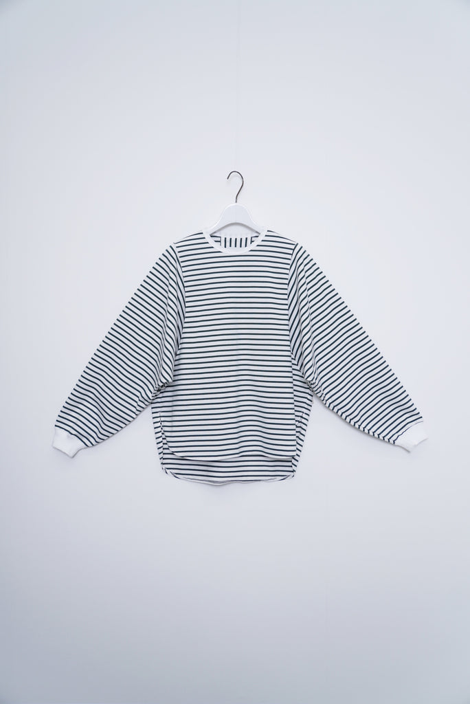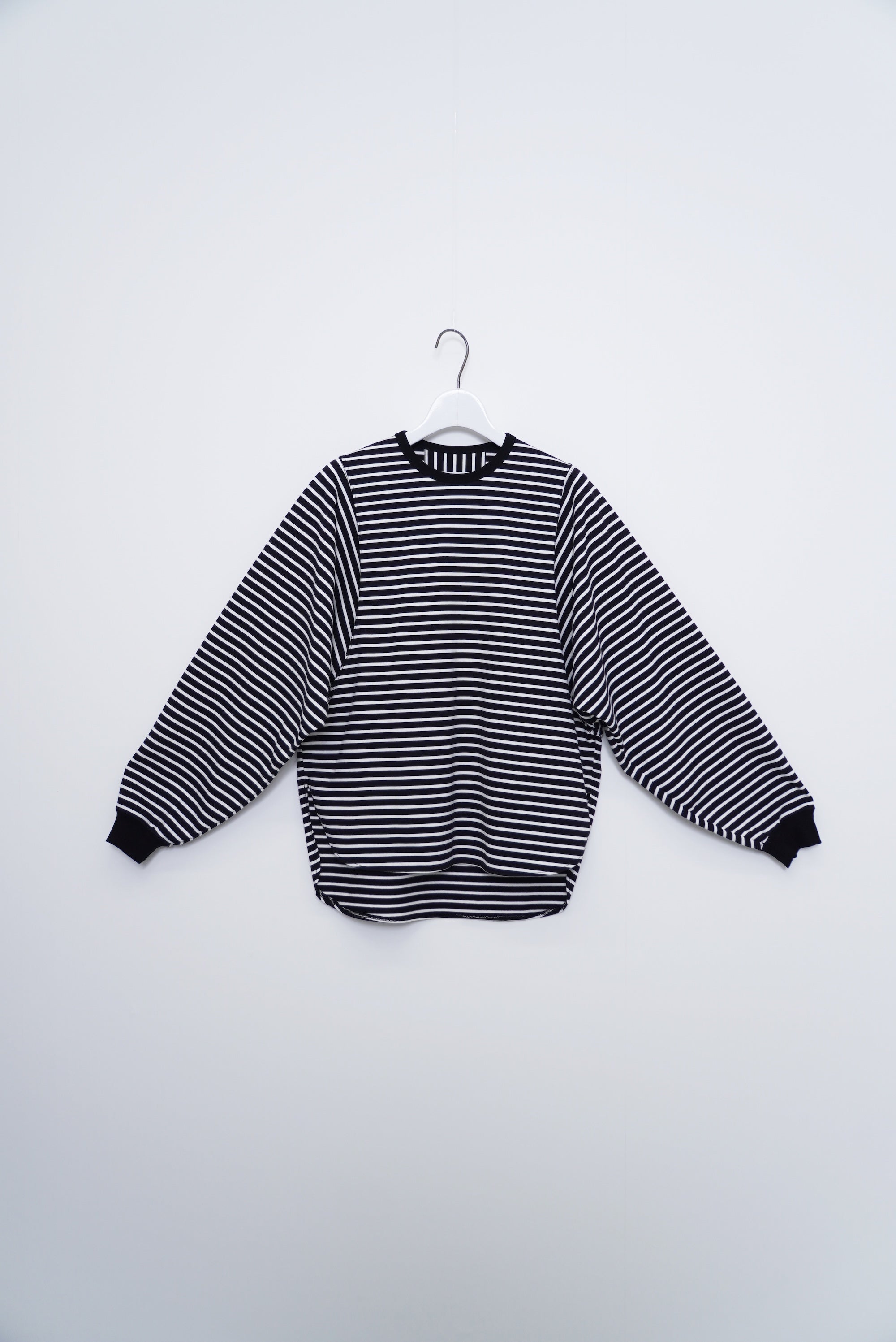 ・ミニマルなデザインのボーダードルマンスリーブTシャツ。