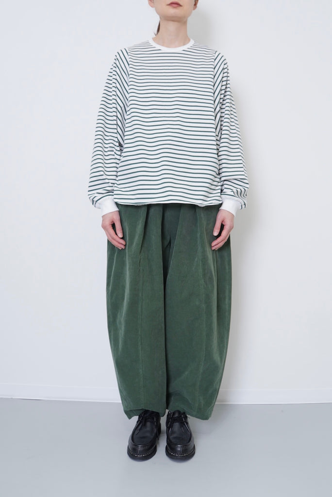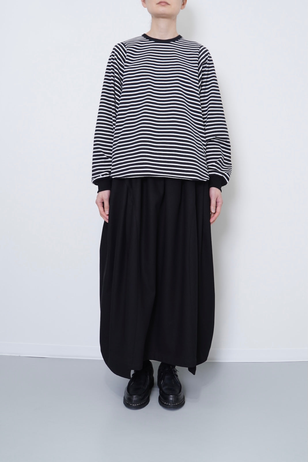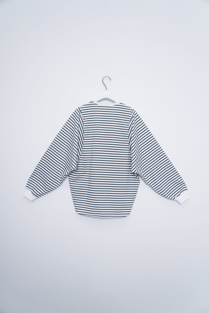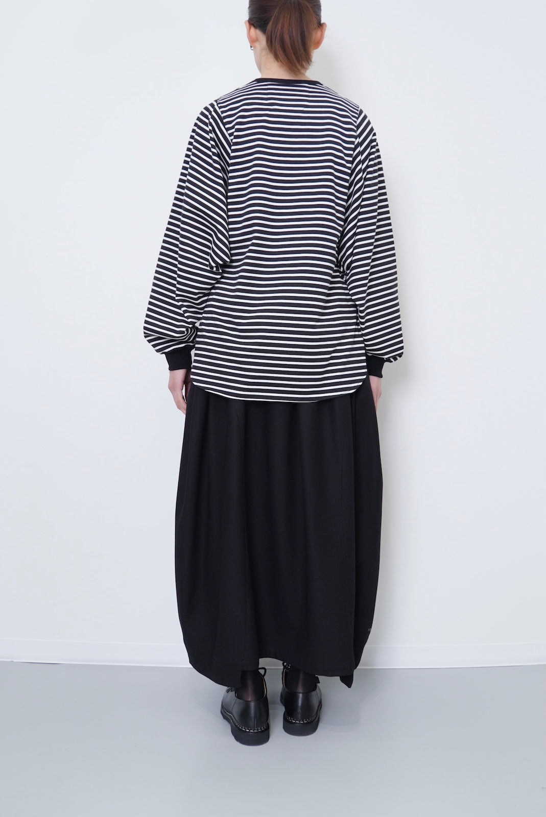 ・ミニマルなデザインのボーダードルマンスリーブTシャツ。