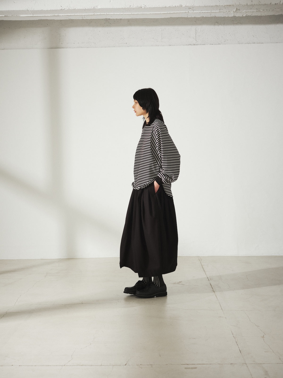 ・服と身体の間に生まれる空間を意識したシルエットは、ブランドのデザインフィロソフィーを反映しており、体のラインをさりげなくカバーします。