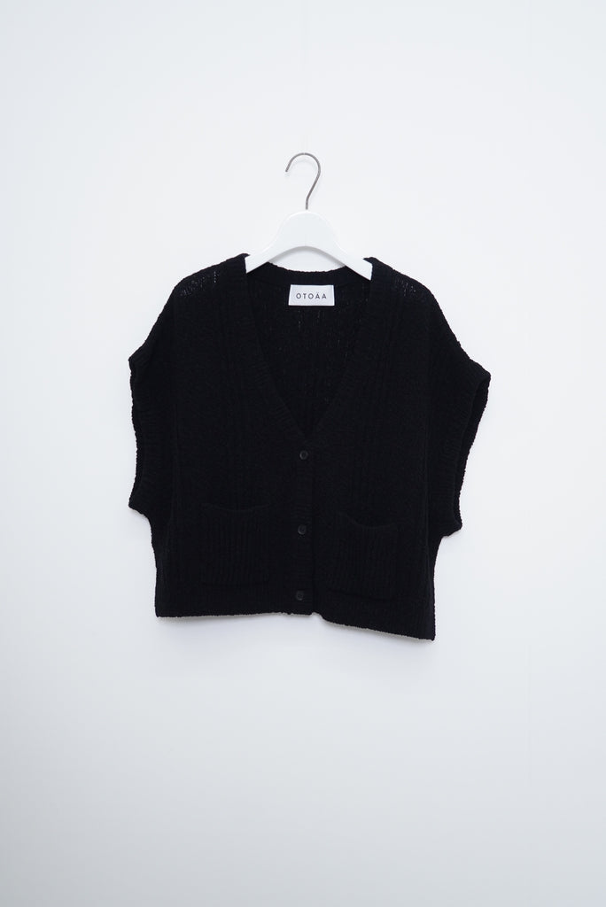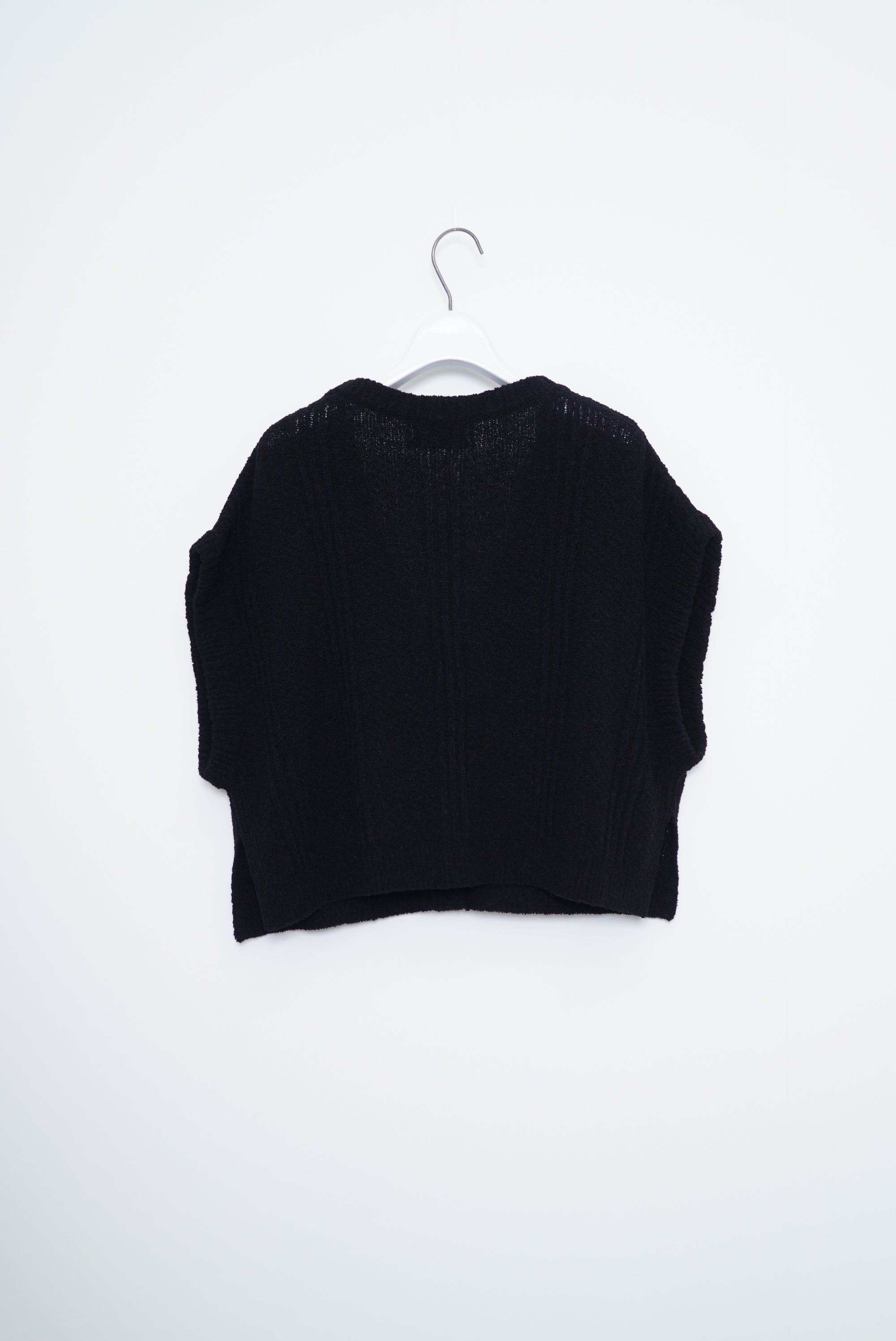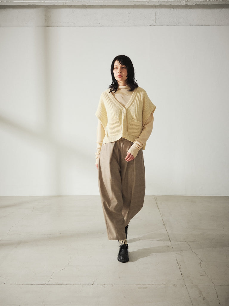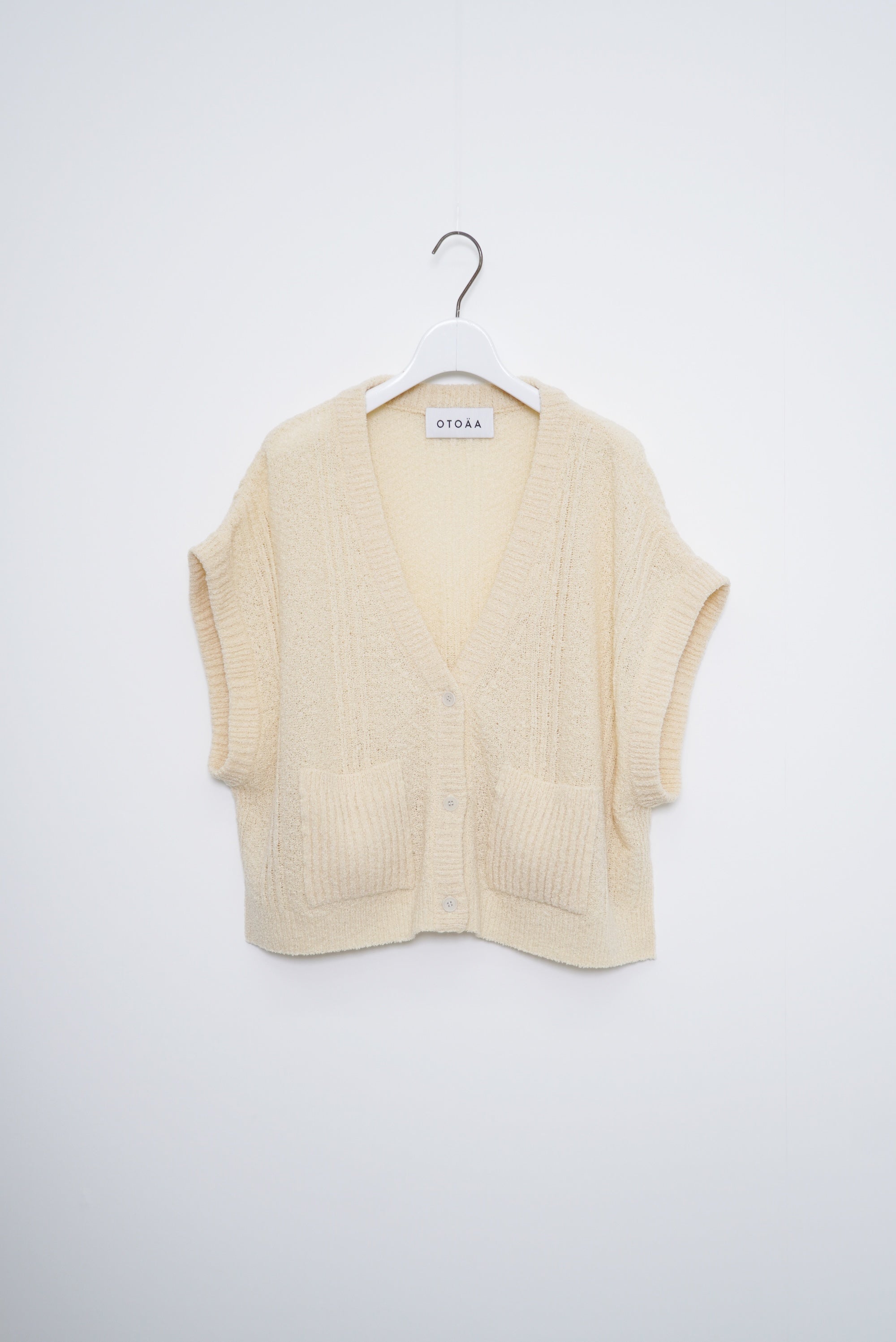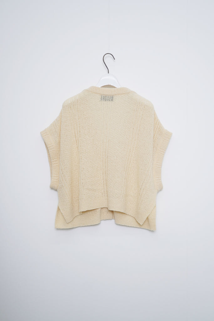 表情のあるブークレー素材を使用した、Vネックのニットベスト。