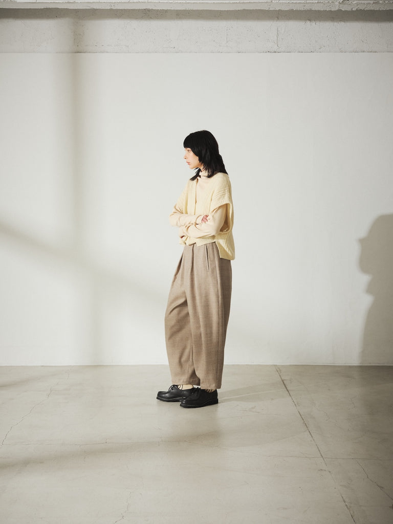 見た目にもあたたかみがあり、季節の変わり目のレイヤードスタイルにもぴったりです。
