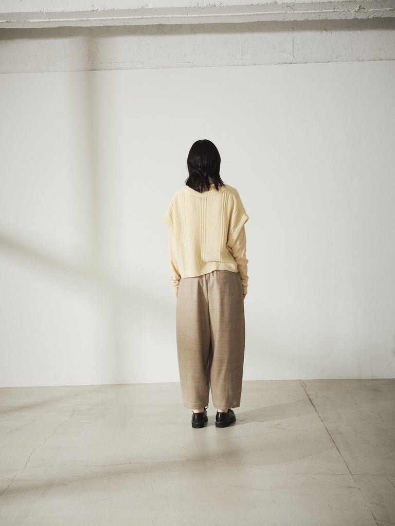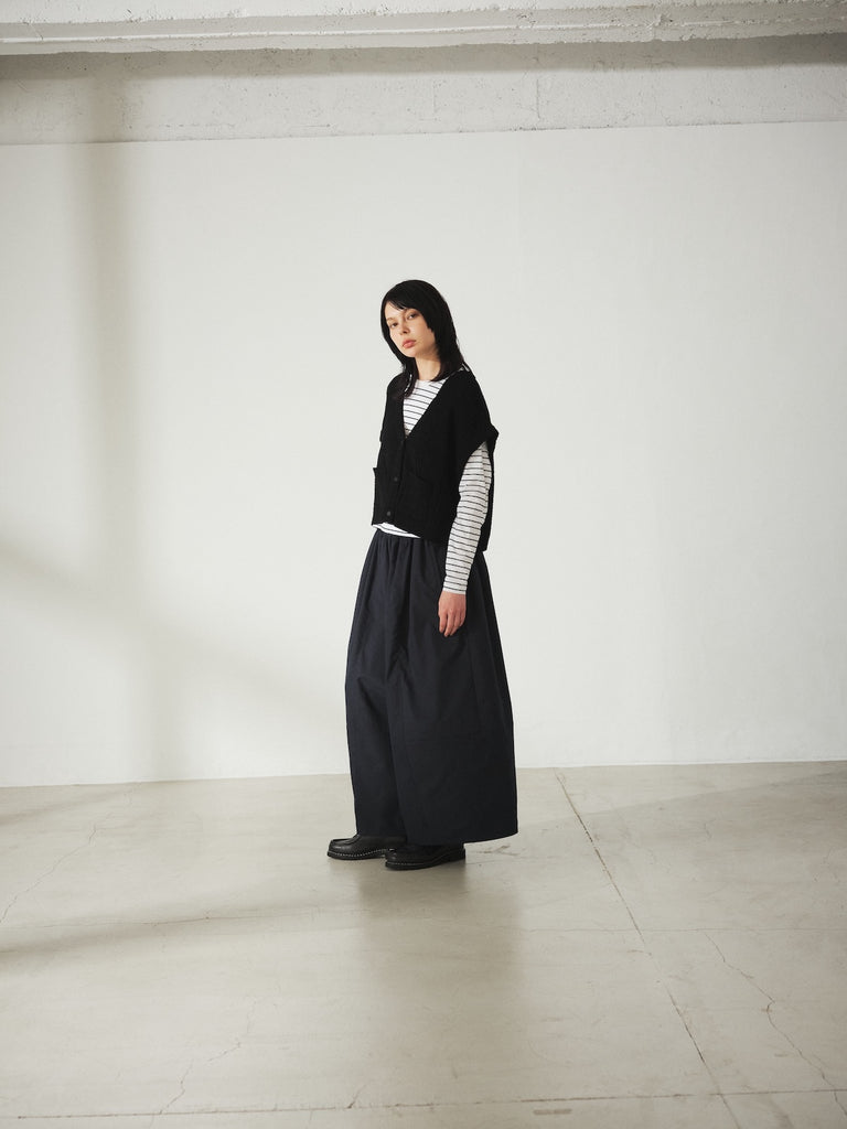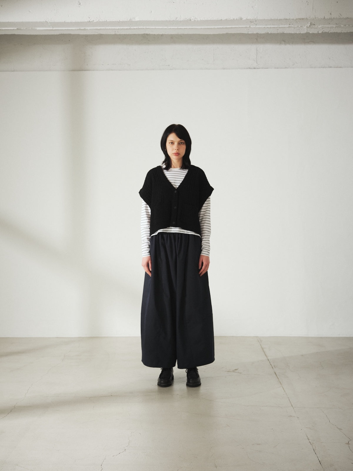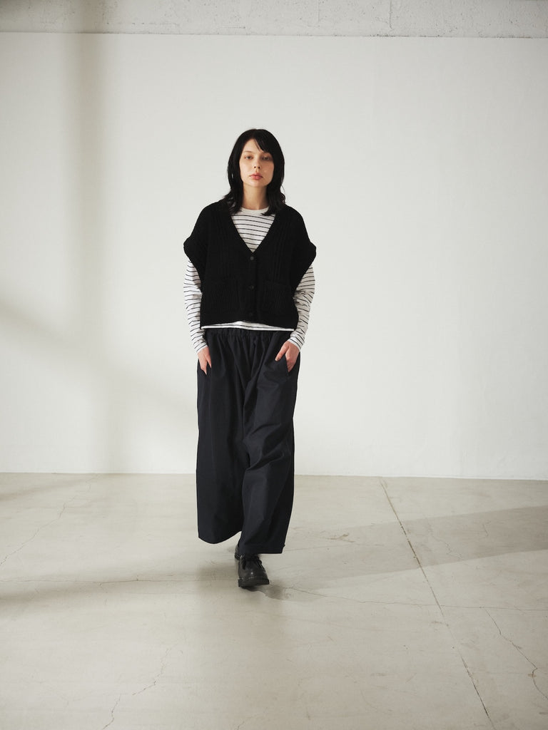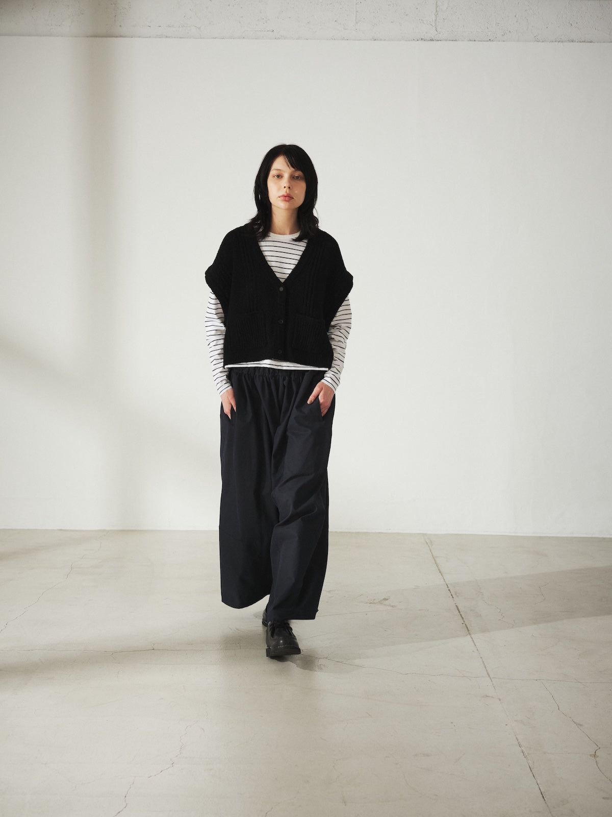 シャツやロンTとのレイヤードでスタイリングしやすいニットベストです。