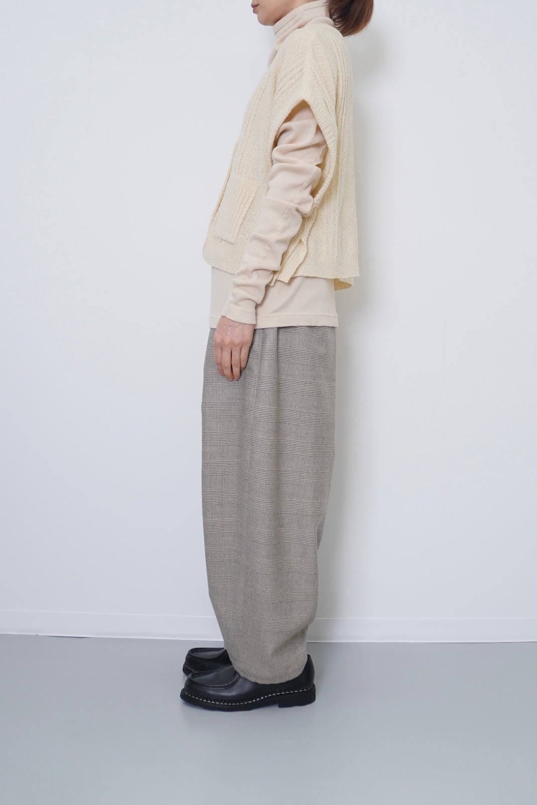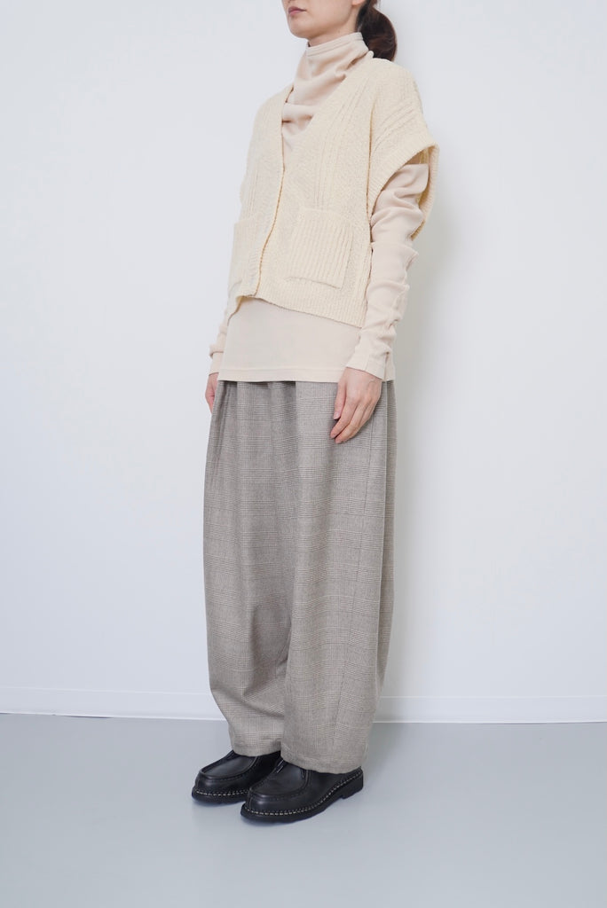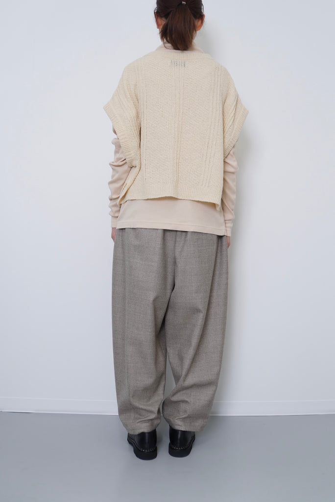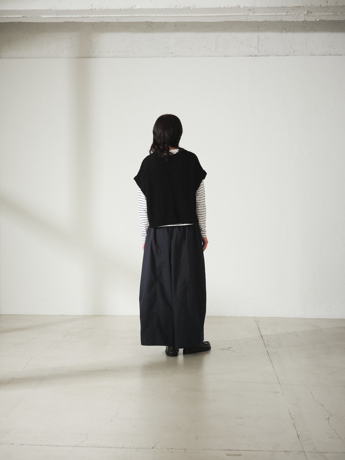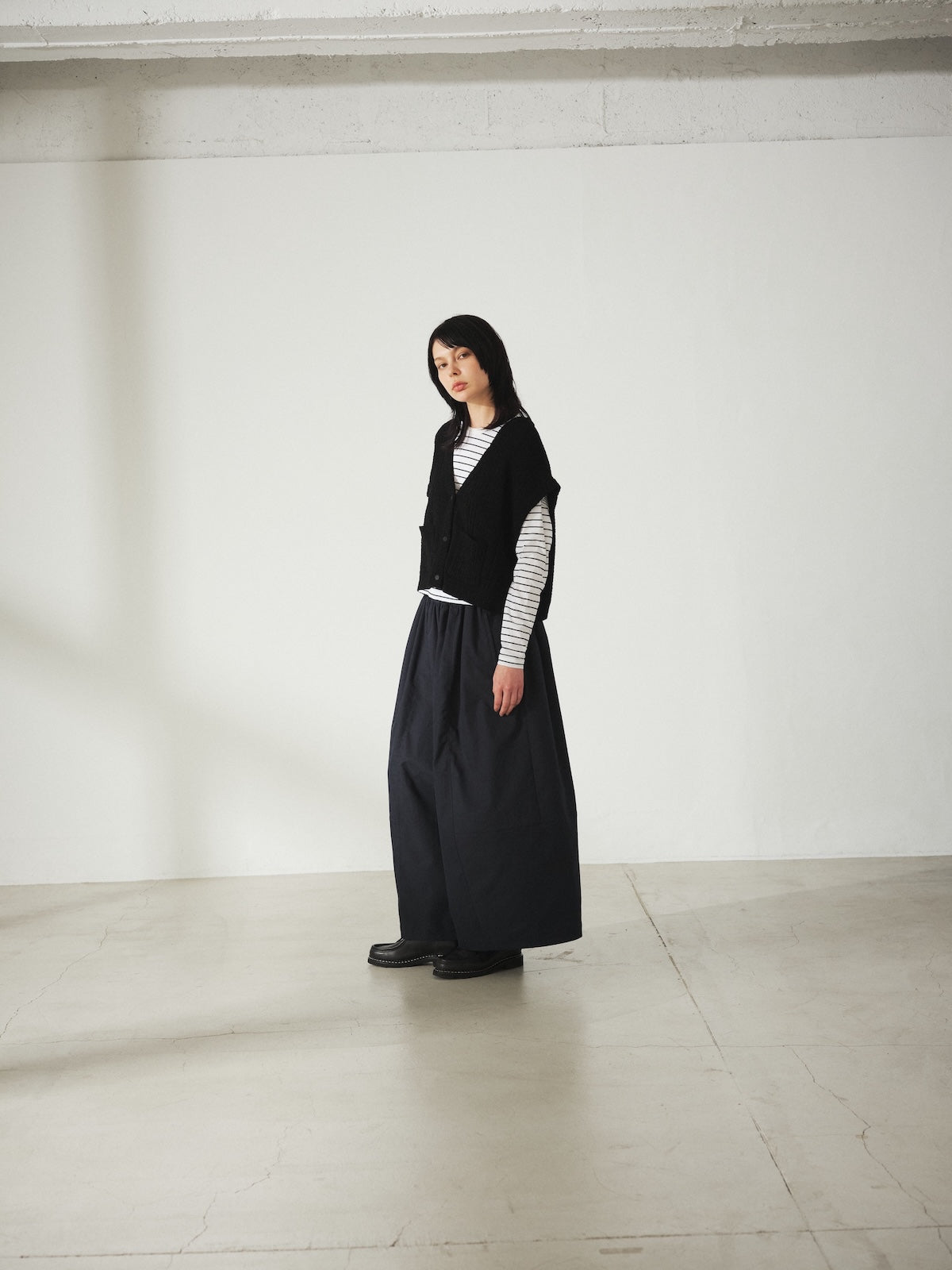 シャツやロンTとのレイヤードでスタイリングしやすいニットベストです。
