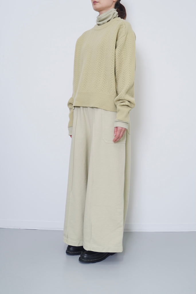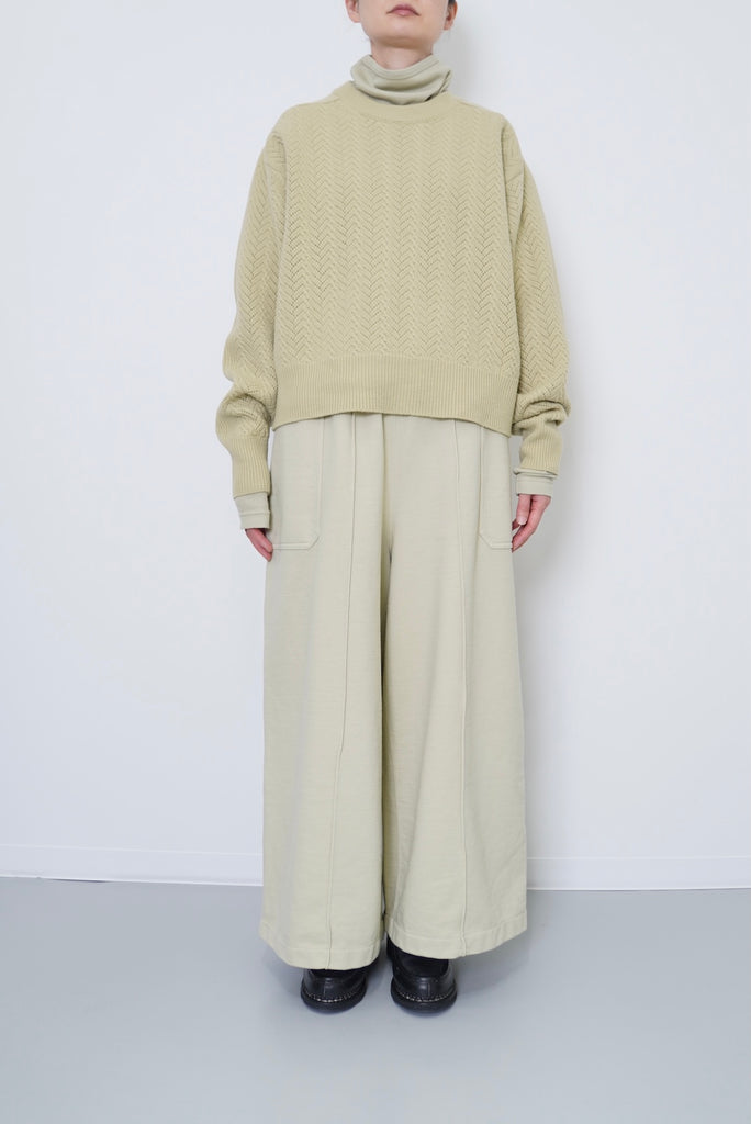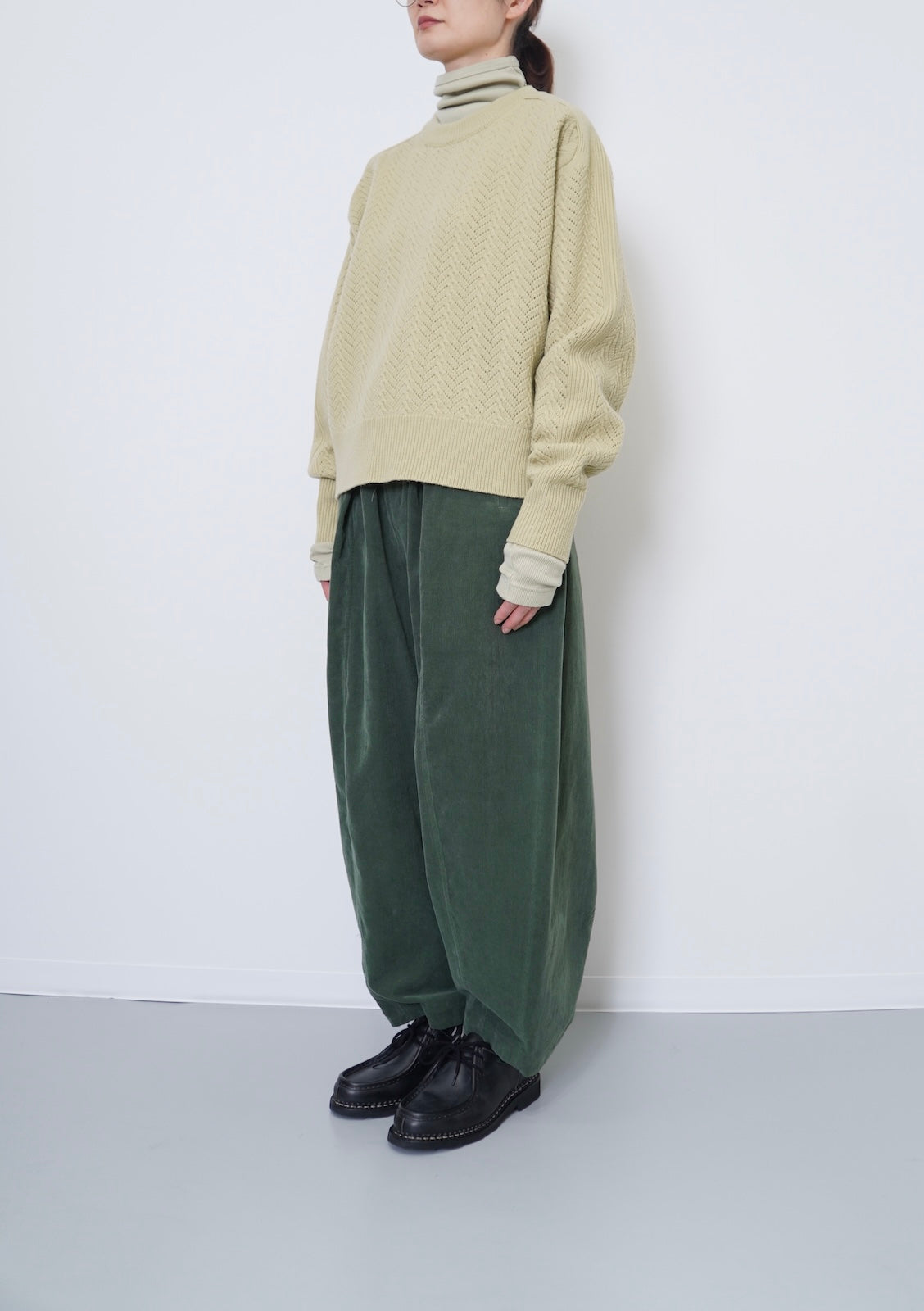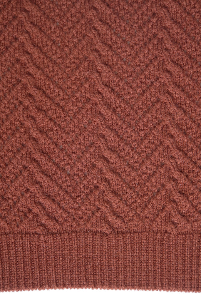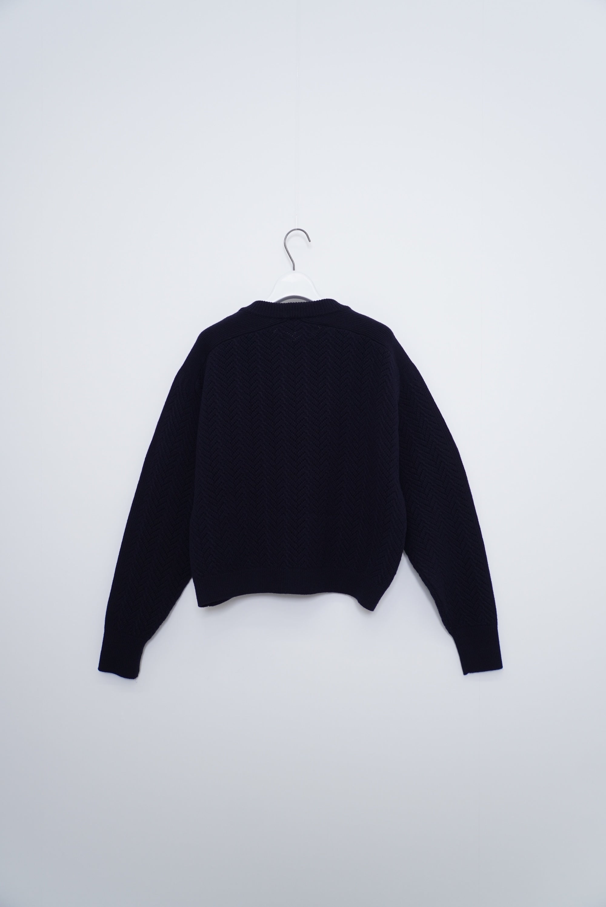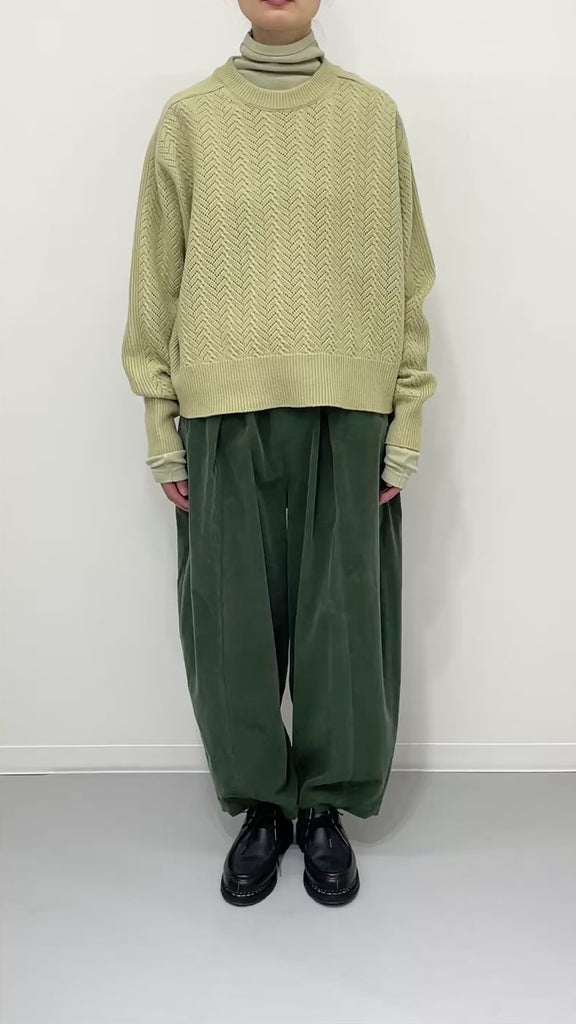 透かし編みのレースヘリンボーン柄が印象的なクルーネックニットプルオーバー。