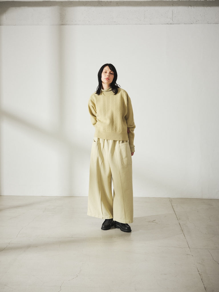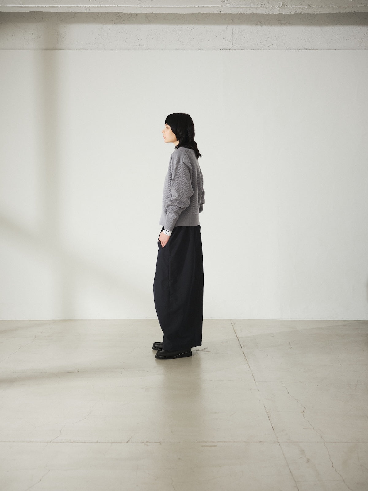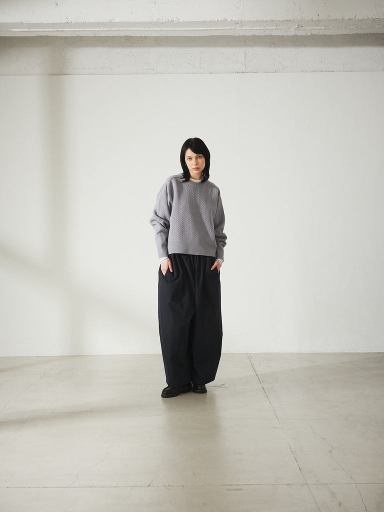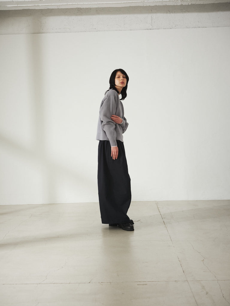 全体的にゆったりとしたシルエットで、袖にボリュームをもたせ、リラックス感のあるバランスに仕上げています。