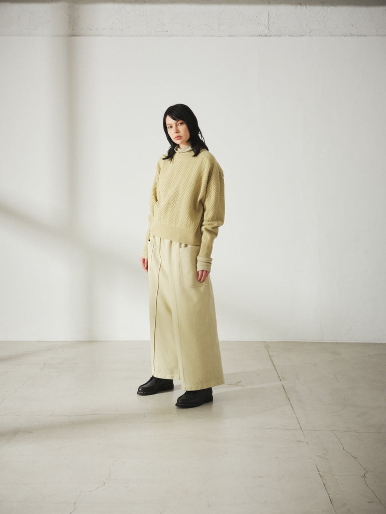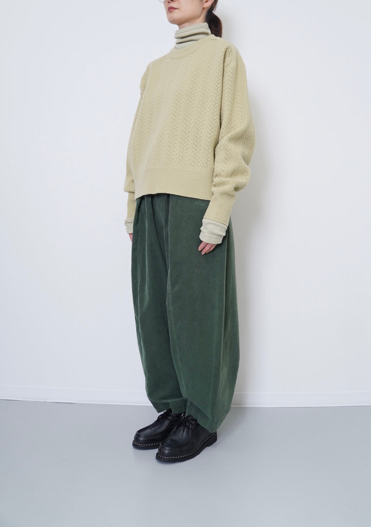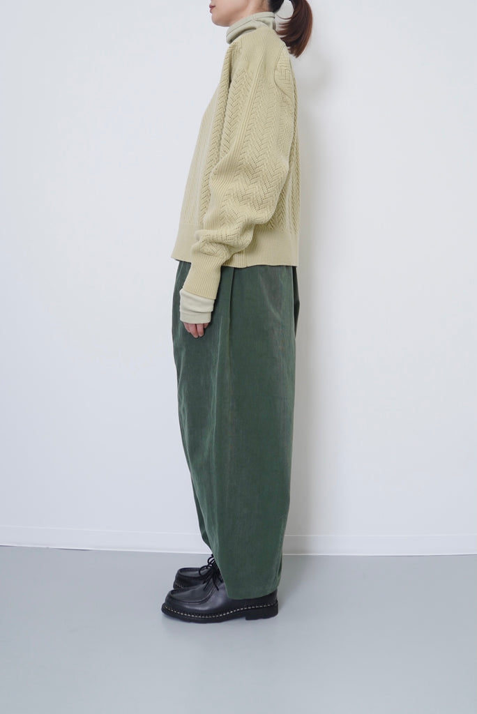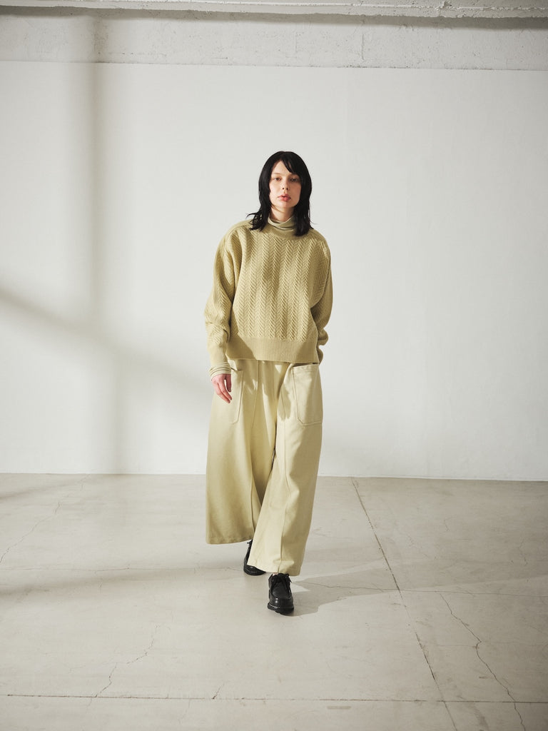 全体的にゆったりとしたシルエットで、袖にボリュームをもたせ、リラックス感のあるバランスに仕上げています。