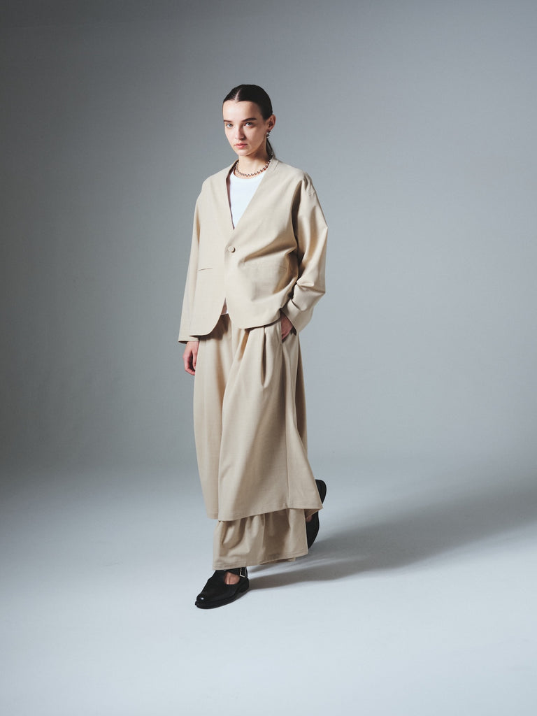 ・ウールとポリエステルの混紡糸でウールの風合いと機能を両立した素材です。