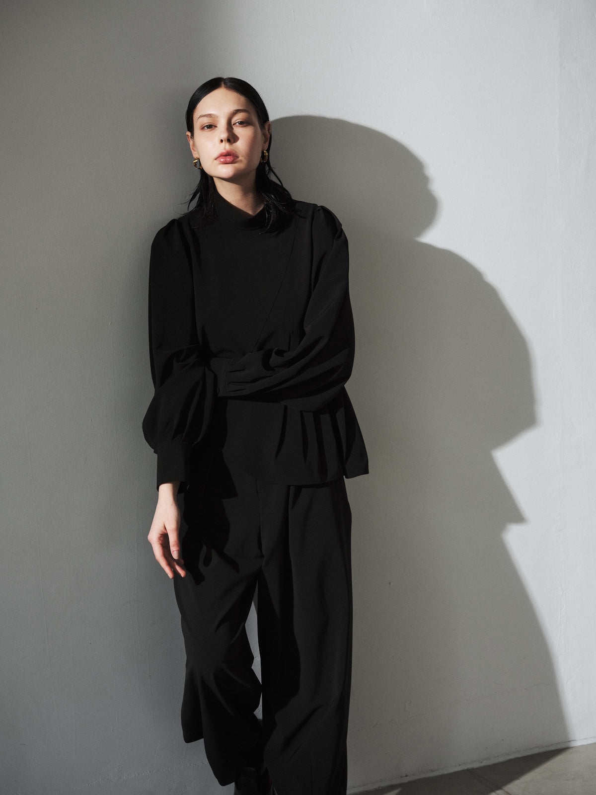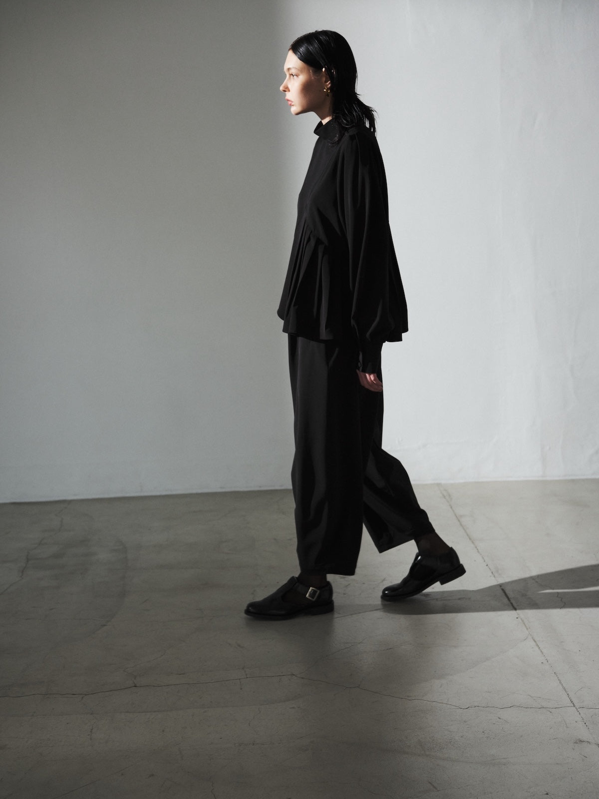 OTOÄA NAVY LANDSCAPEのデザインは、パンツスタイルからスタートしています。服と身体の間に生まれる空間を意識したシルエットは、ブランドのデザイン哲学を反映しています。股上が深く、ヒップ部分にゆとりを持たせたデザインで、体のラインをさりげなくカバーします。