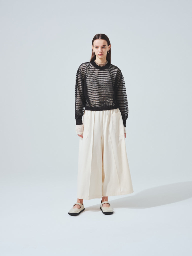 ・服と身体の間に生まれる空間を意識したシルエットは、ブランドのデザインフィロソフィーを反映しており、体のラインをさりげなくカバーします。